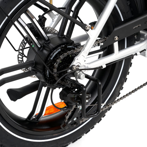 Gerade geschwächte Radler schätzen an den Tektro Bremsen den geringen Kraftaufwand. 20 Prozent weniger Handkraft genügen, um die gleiche Bremswirkung wie bei normalen Felgenbremsen zu erzielen. Die überdurchschnittlich hohe Flächenpressung sorgt für Halt und Sicherheit, auch bei Nässe oder auf rutschigem Untergrund wie beispielsweise Sand, Schotter – oder auch Schnee. Gerade Pendler, die früh morgens zur Arbeit fahren, bevor der Räumdienst aktiv wird, werden jene Komponente ganz besonders zu schätzen lernen. Der Effektivität des Bremsvorgangs ist auch die extra breite Bereifung des Fatbikes zuträglich. Durch die voluminösen FatTires von Kenda der Größe von 20x4 Zoll hält das Klapprad auch bei starken Bremsungen auf matschigem oder glatten Untergrund sehr stark den Kontakt zum Boden. Das geringe Eigengewicht der Tektro Scheibenbremsen ist des Weiteren dem Federungskomfort zuträglich. Wie alle anderen verbauten Komponenten sind auch die Bremsen des E-Bike Palma pflegeleicht, langlebig, haltbar, robust und verschleißarm.