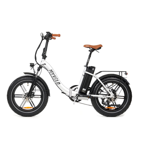 La tige de selle pliable facilite le retrait de la batterie remplaçable. Une aide à la traction vous permet de démarrer rapidement. Le cuir végétalien sur la selle en gel confort et sur les poignées donne un toucher de première classe et complète l'aspect élégant du fat bike. Le vélo électrique pliable MYVELO Rio impressionne par ses composants de première classe, ses fonctionnalités intelligentes et son design et ses promesses distinctifs : les vraies aventures commencent au-delà du chemin familier !