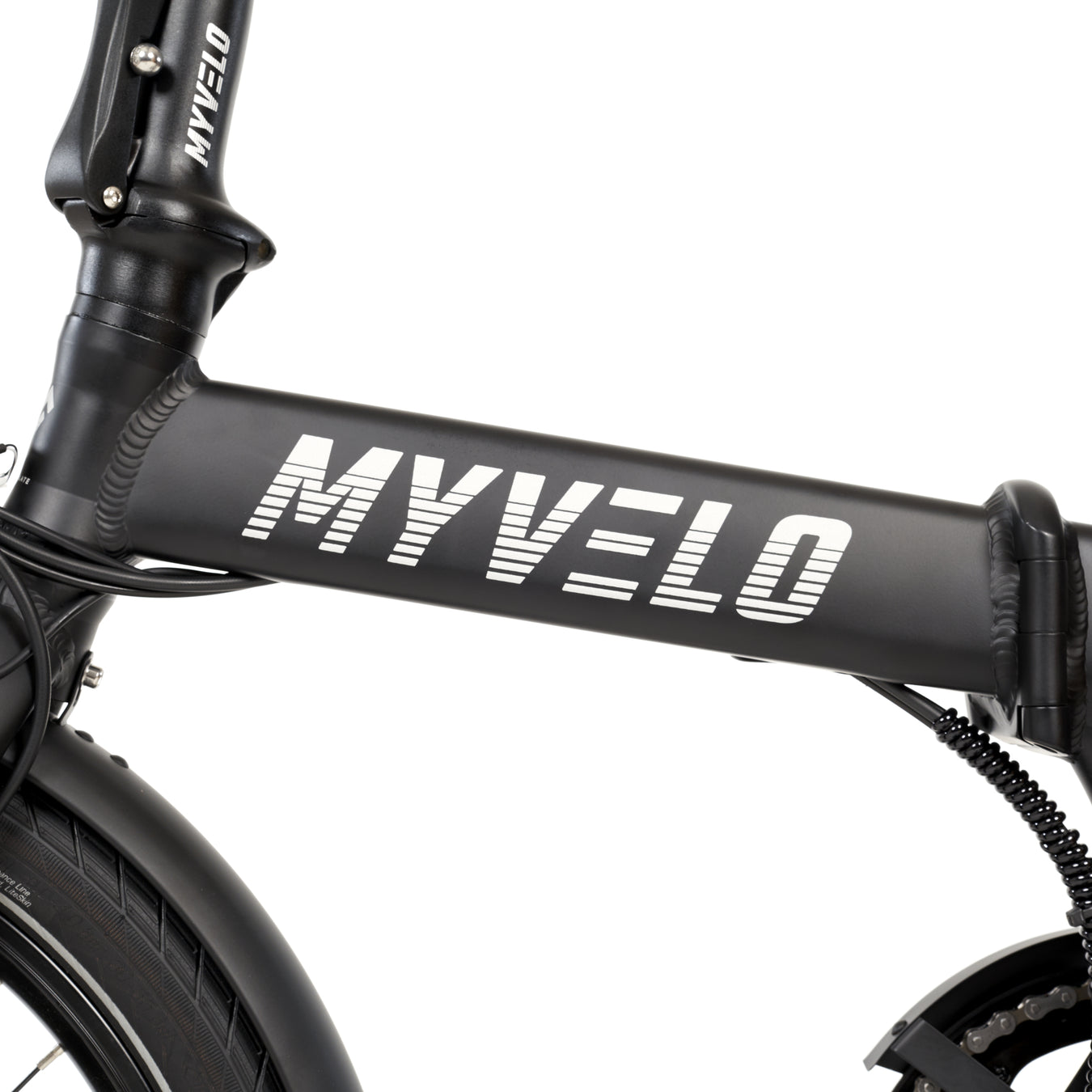 Le détail le plus sophistiqué du MYVELO Zurich est peut-être caché dans la tige de selle : c'est là que se cache la batterie amovible de 504 Wh, sans compromettre le design du cadre. Une protection de dérailleur arrière assure une sécurité supplémentaire, et le cuir végétalien sur la selle en gel confort et les poignées du guidon assurent une sensation exclusive. Le vélo électrique pliant MYVELO Zurich représente le mélange parfait entre design moderne et technologie de pointe et ne promet rien de moins que des moments inoubliables dans la rue !