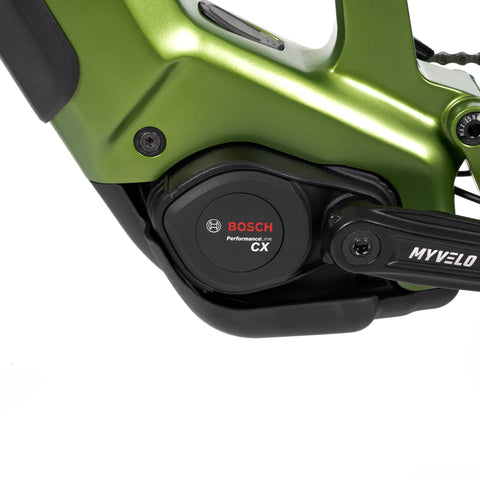 Le VTTAE est propulsé par la dernière génération de moteurs Shimano. Le Shimano EP801 n'est pas seulement nettement plus puissant que son prédécesseur : toute l'électronique a été revue pour le rendre plus compact, plus silencieux et plus puissant. Une autre nouveauté est l'interrupteur marche/arrêt révisé, qui se trouve désormais directement sur l'écran de commande du guidon. Le système de moteur central révisé vous permet de vous concentrer pleinement sur vos sentiers. La batterie amovible verrouillable est disponible avec une capacité de 630 Wh et, avec un style de conduite et des conditions appropriées, permet une autonomie allant jusqu'à 130 km jusqu'au prochain cycle de charge.