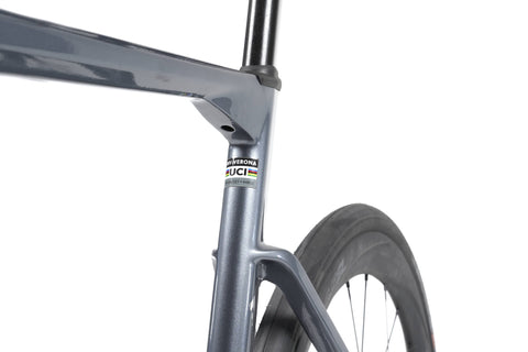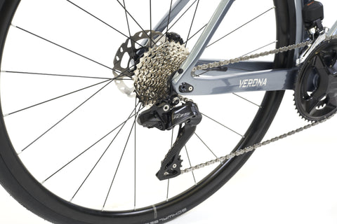 Der Rahmen ist das Herzstück des Verona x GCN. Aus hochwertigem Carbon gefertigt, kombiniert er aerodynamische Effizienz mit kontrollierter Steifigkeit – ideal für Fahrer, die Tempo lieben und jede Pedalumdrehung in Vortrieb verwandeln wollen. Durch die sportliche Geometrie und die sorgfältig abgestimmten Rohrformen entsteht eine Sitzposition, die einerseits aggressiv orientiert ist und andererseits nicht auf Komfort verzichtet. Die verfügbaren Größen von XS bis XL stellen sicher, dass du deine ideale Passform findest, während die silber-blaue Metallic-Lackierung dem Rad eine klare, athletische Erscheinung verleiht.